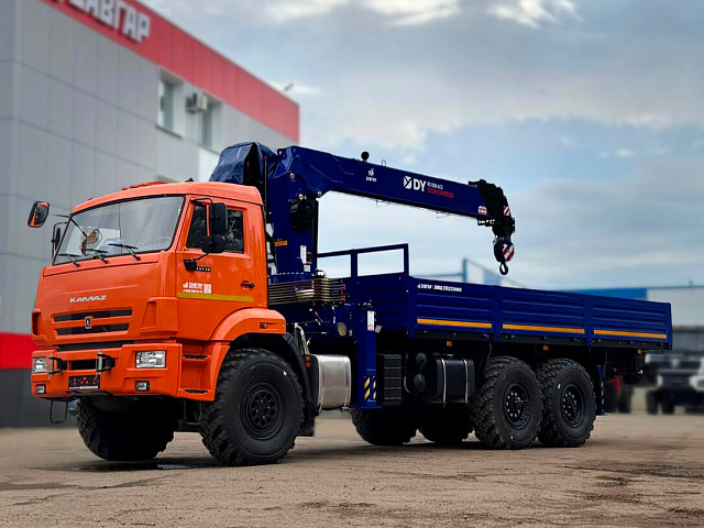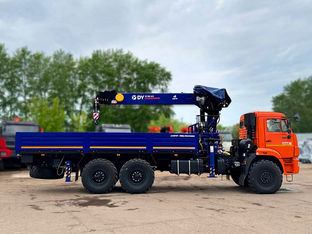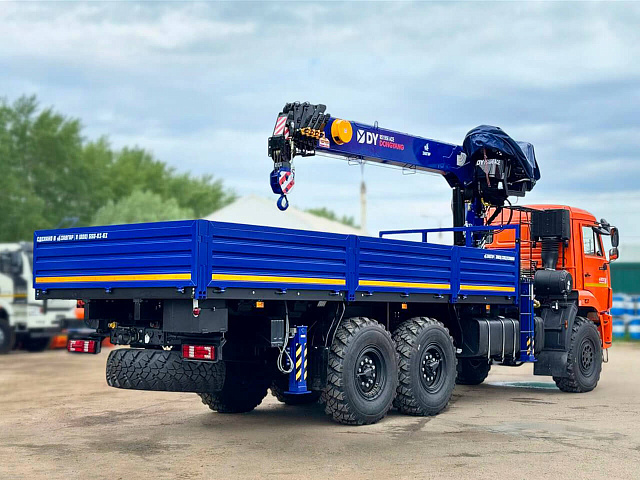 Бортовой КАМАЗ 43118 с краном-манипулятором DONGYANG SS1956 ACE и двигателем Cummins представляет собой мощное и надежное транспортное средство с колесной формулой 6x6, предназначенное для выполнения тяжелых погрузочно-разгрузочных и транспортных работ в тяжелых условиях.