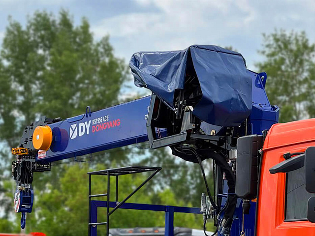 Кран-манипулятор DONGYANG SS1956 ACE обладает грузоподъемностью 8 000 кг и грузовым моментом 19 т·м. Максимальный вылет стрелы составляет 19 метров, а максимальная рабочая высота подъема достигает 21,9 метра. Стрела выполнена из шести секций, угол подъема регулируется от 0 до 80 градусов, кран способен вращаться на 360 градусов непрерывно со скоростью 2 минуты на полный оборот. Управление осуществляется с сиденья на колонне, а также с земли с двух сторон при работе с аутригерами. Масляный бак крана объемом 90 литров обеспечивает систему охлаждения. Гидравлические выдвижные аутригеры имеют вылет 5,7 метра спереди и 4,4 метра сзади, обеспечивая устойчивость крана во время работы.