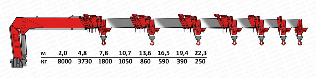| Вылет стрелы, м | 22,3 |
