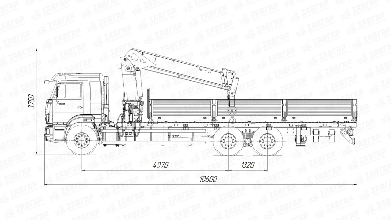 | Размеры бортовой платформы, ДхШхВ, мм | 6200х2550х750 (600), 6500х2550х750(600), 7800х2550х750(600), 8000х2550х750(600) |