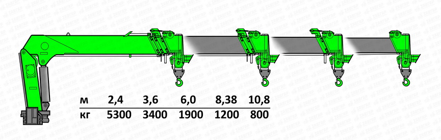 | Грузоподъемность КМУ, кг | 5300 |